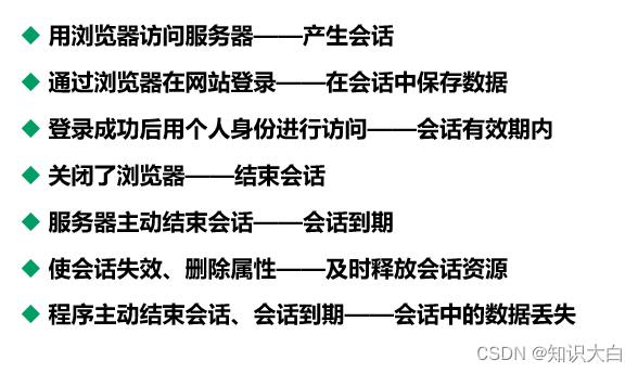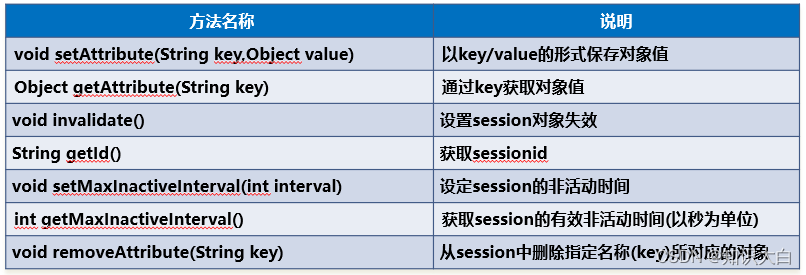 - 只移除会话的一个属性:session.removeAttribute(String name);