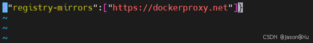 { "registry-mirrors": [ "https://dockerproxy.net" ] }