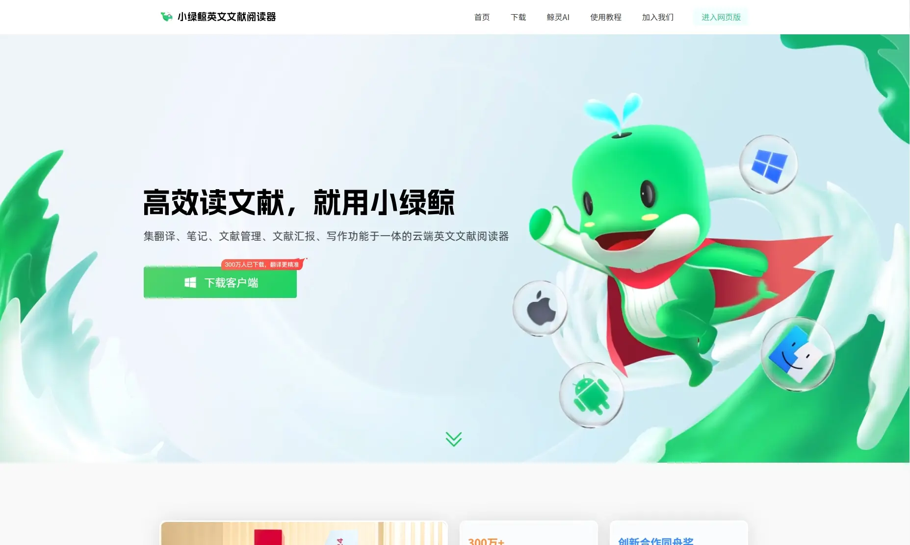 小绿鲸是专为科研人员设计的AI英文文献管理与阅读工具,深度融合人工智能技术,覆盖文献阅读全流程。它基于鲸灵AI科研大模型开发,支持113个学科的专业术语翻译,提供从文献解析、笔记整理到知识输出的闭环解决方案。