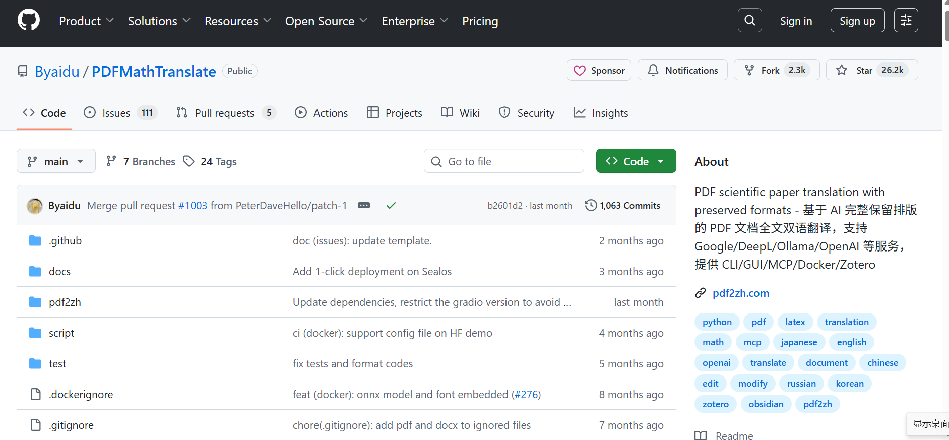 PDFMathTranslate是开源的PDF文档翻译工具,设计用于翻译科技论文等PDF文件,能保留原文的排版,包括公式和图表。PDFMathTranslate支持双语对照,保持原有目录结构,兼容多种翻译服务,如Google、DeepL、Ollama和OpenAI等。用户基于命令行工具操作,实现文档的快速翻译和双语对照查看。