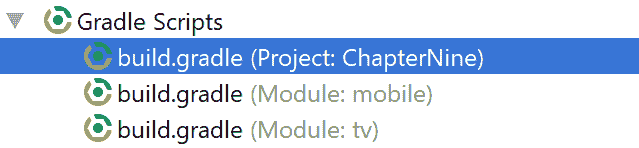 正如读者所见,Gradle 脚本通常有一个项目(或根)文件和一个或多个模块级别文件: