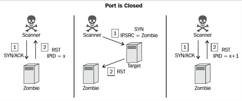下面的图展示了当僵尸主机用于扫描关闭端口时,所产生的交互。