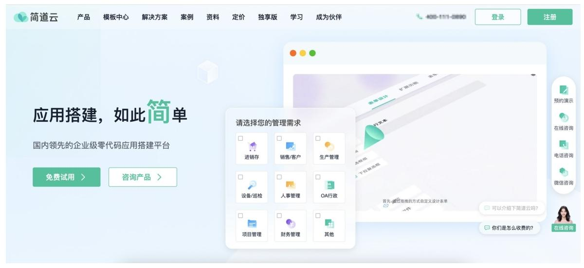 简道云作为国内零代码平台的头部代表(据市场调研数据,其已连续三年位居国内零代码平台市场占有率榜首),核心技术优势在于 “低门槛定制能力”—— 通过可视化拖拽、字段配置等无代码操作,支持企业根据业务需求快速搭建 CRM 模块,覆盖从市场线索到财务回款的全流程。