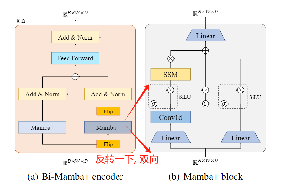实际上, 把Mamba原本的图顺时针旋转90度, 加上一个反向分支, 就是Vision Mamba block了