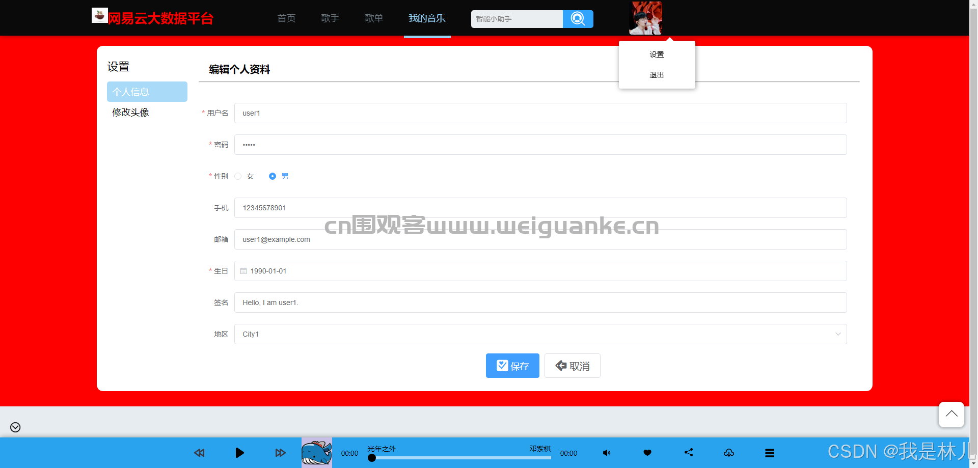 6. 个人信息修改:允许用户修改个人信息,如用户名、密码、头像等。
