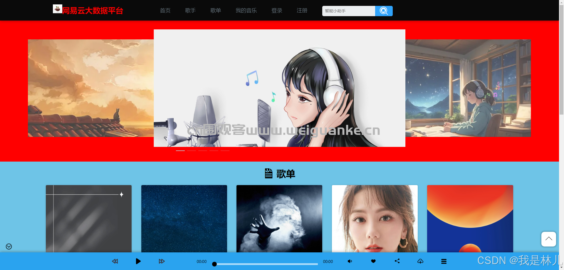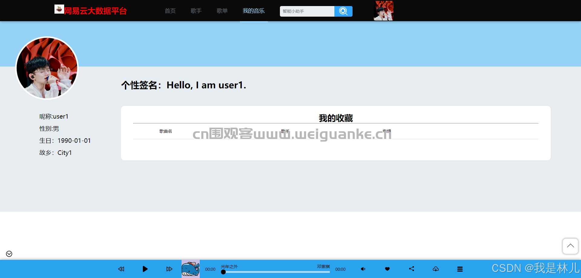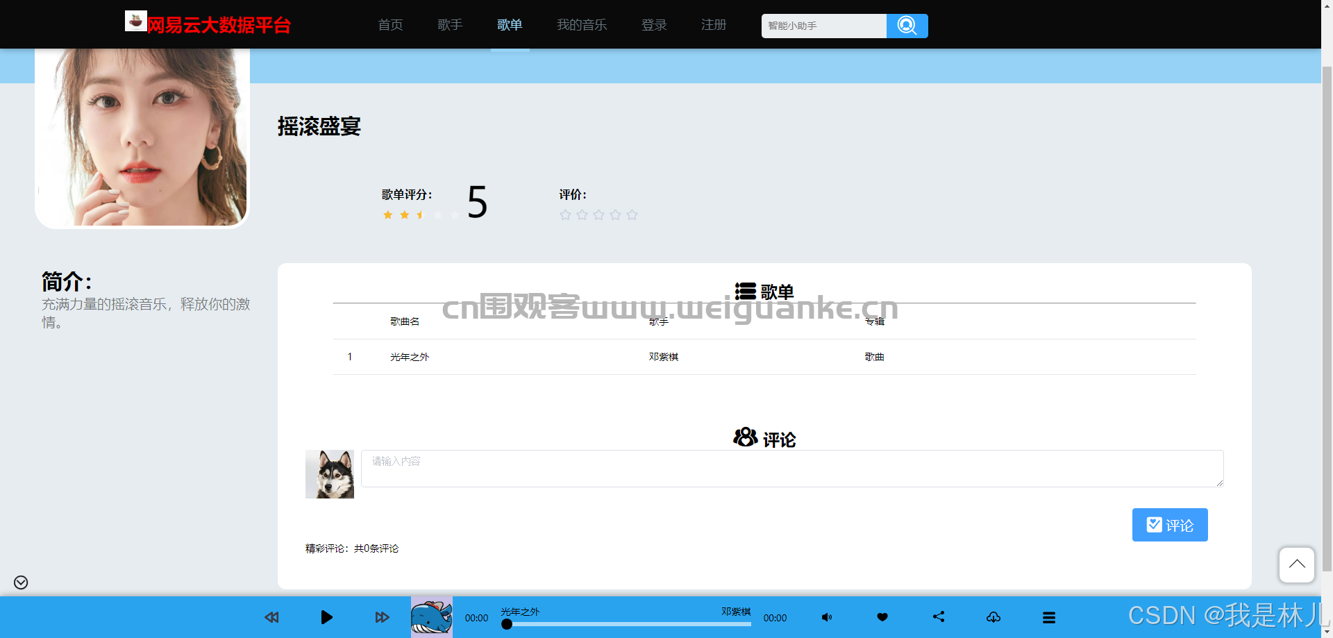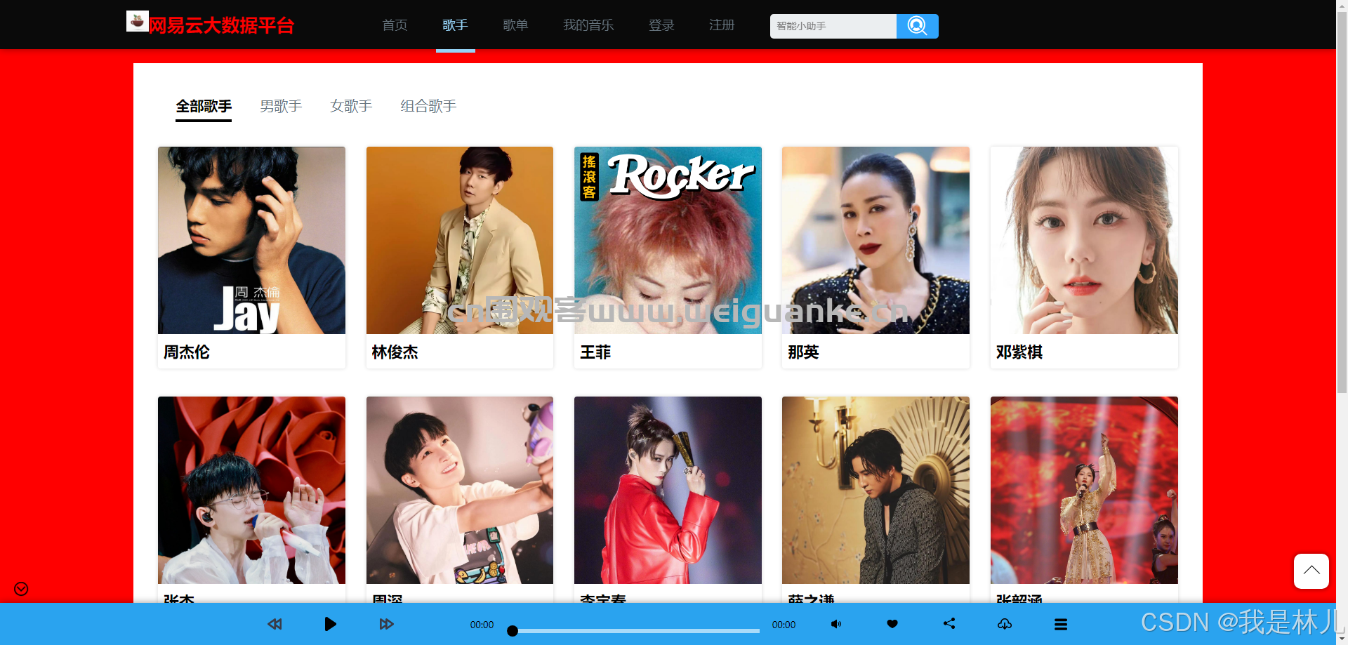 3. 歌手:展示歌手信息,包括歌手介绍、作品列表等。