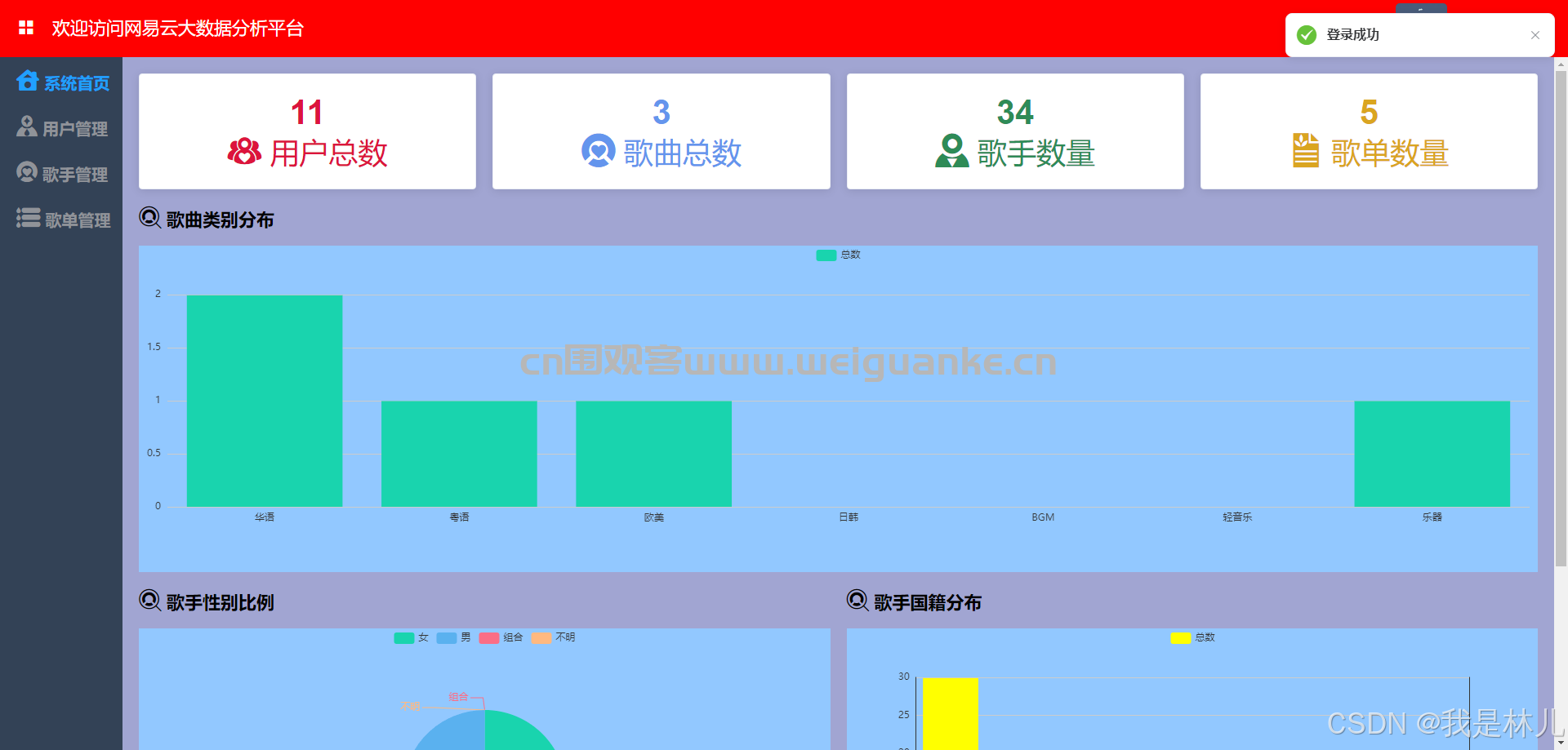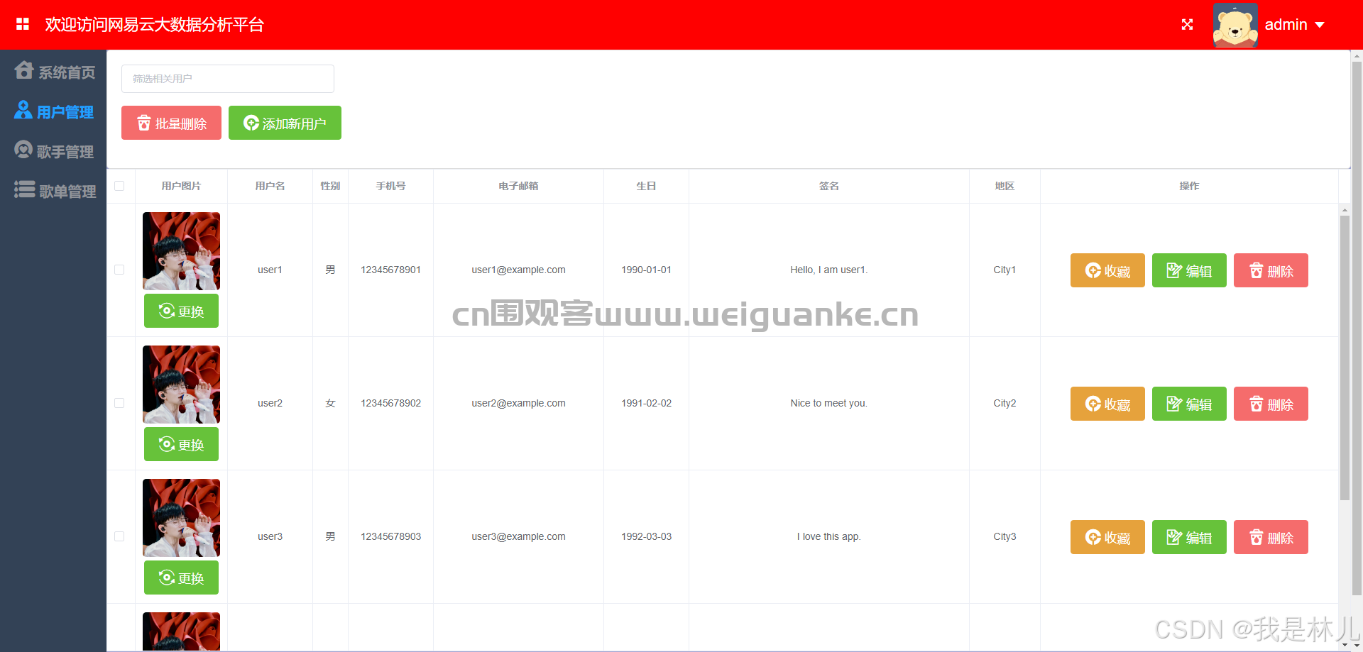 3. 歌手管理:管理歌手信息,包括添加、修改和删除歌手。