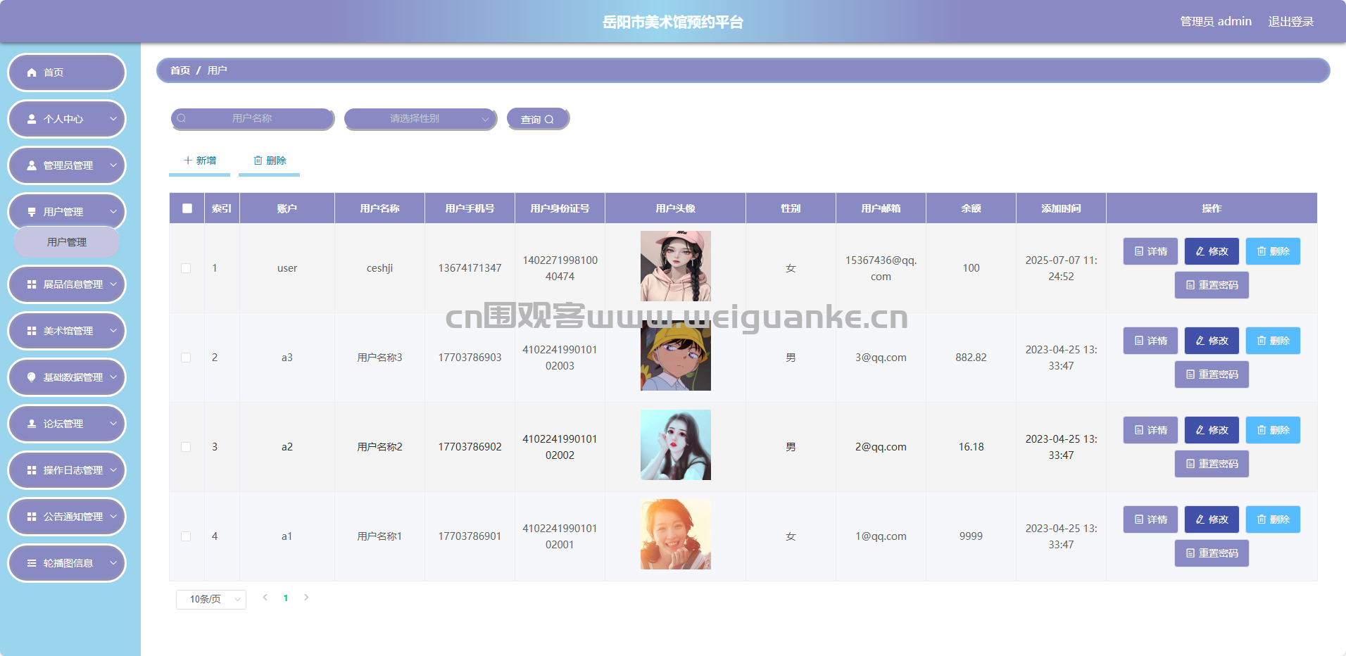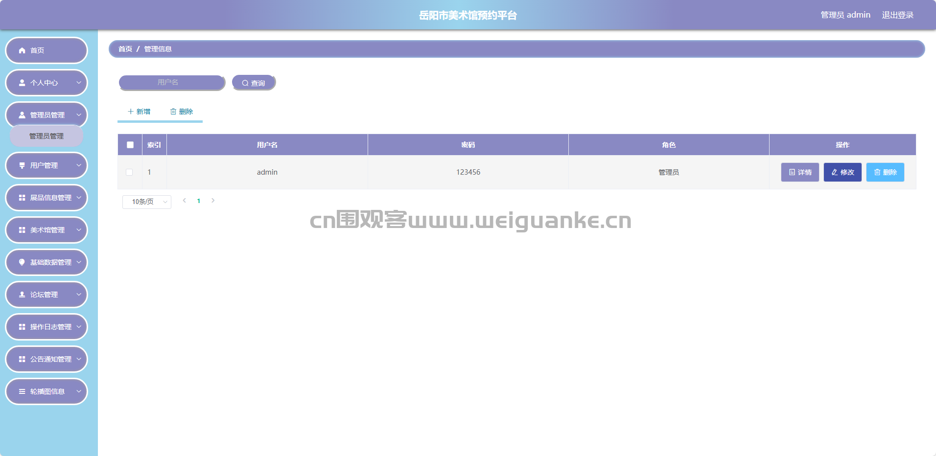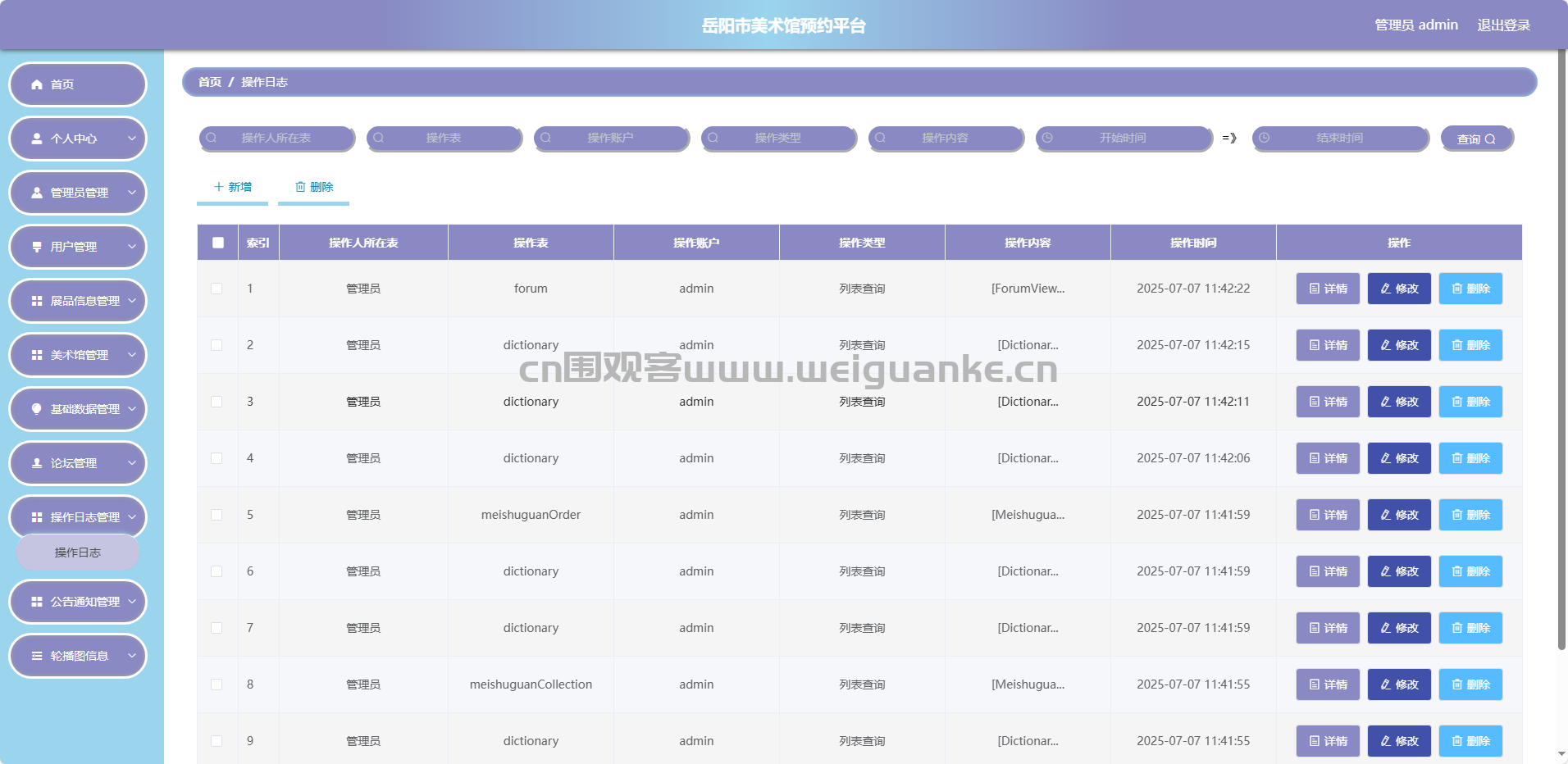 美术馆管理:添加/编辑/删除美术馆信息