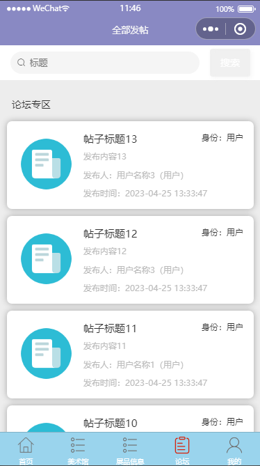 论坛:浏览各类公告和用户发布的论坛帖子。