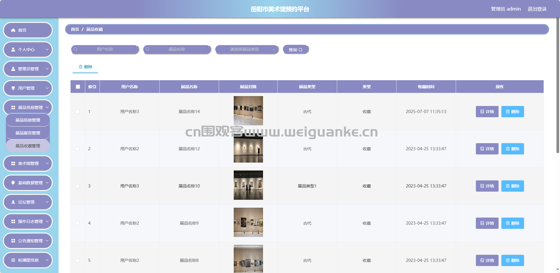 美术馆收藏管理:查看/删除美术馆收藏信息