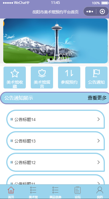 基于springboot,vue,微信小程序的岳阳市美术馆预约平台系统。通过springboot,vue框架进行开发