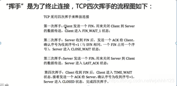 第三次: B---->A FIN=1,ACK=1,seq=w,ack=u+1