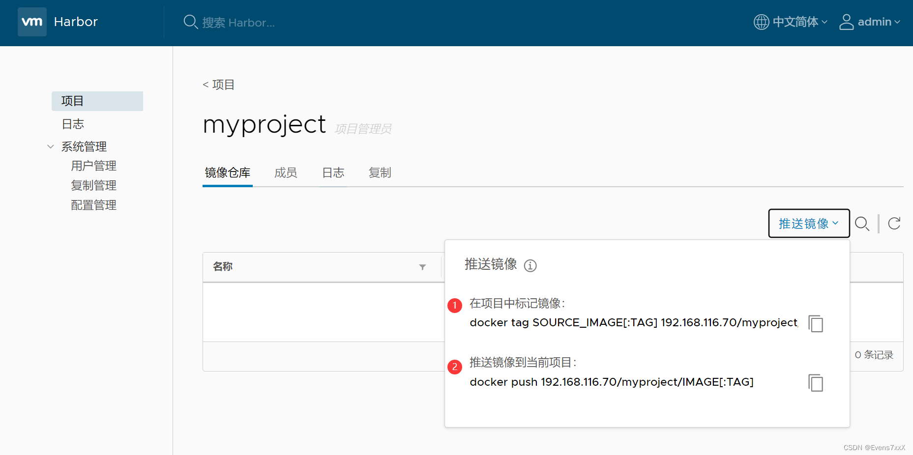 使用浏览器访问本机ip,使用默认的用户名admin,密码Harbor12345登录