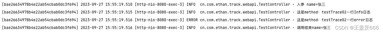 SpringBoot实现简单的日志链路追踪 随着分布式应用的普及,现在的一些应用系统不再像以前,所有的文件(前后端程序)都打包在一个包中,现在的很多应用都是模块化开发,开发的团队也是不一样,服务与服务之间的调用也比较多,在这种情况下,系统的日志就显得尤其的重要,然而,在多数情况下,当我们的系统出现了异常,需要查看日志时,就会很抓狂。本次通过一个简单的SpringBoot应用来总结,我们如何将日志串联起来,以下截图是最终的实现效果。经过上述的几个步骤,基本上就可以简单的将同一次的业务调用链上的日志串联起来了。自定义的拦截器需要实现。