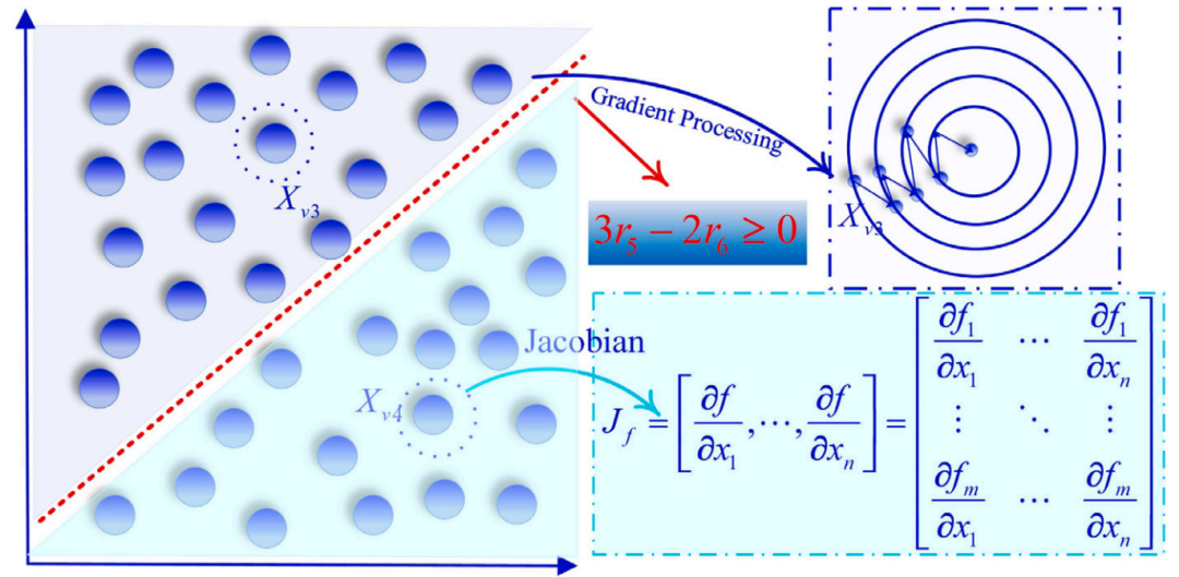 其中, 、 、 为取值在 0 到 1 之间的随机数。雅可比矩阵 是描述非线性优化问题中解对输入变化敏感性的关键工具。通过对目标函数 进行雅可比计算,RGP 能基于目标函数的局部线性化,执行更为精确的投影更新。
