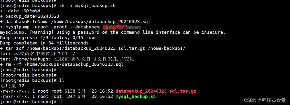 - >后面是备份的路径和文件名。上面是 /home/backups/databackup_$backup_date.sql
