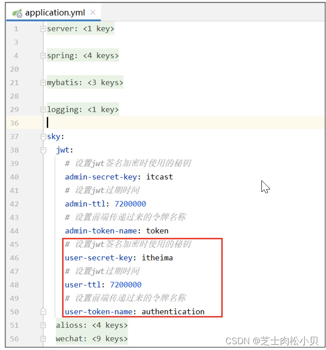 配置为微信用户生成 jwt 令牌时使用的配置项:
