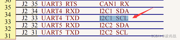 可以看出, "I2C1_SCL"使用的 UART4_TXD这个pin, "I2C1_SDA"使用的 UART4_RXD这个pin。