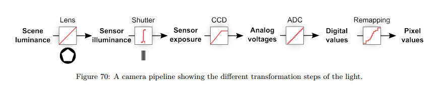 世界中的部分物体亮度是很高的,比如光源,相机的亮度范围也是有限,就需要将世界的亮度重新映射到相机的亮度范围,最终显示在照片上