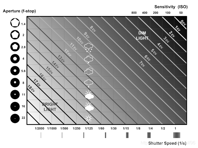 控制曝光的三个参数就是:快门速度、光圈大小、感光度(ISO)