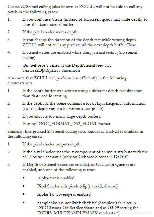 在NVIDIA GPU Programming Guide8&9的版本里写到不会影响 coarse-z,但是会影响fine-grained z。