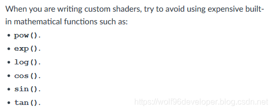 f. Use a texture to store a set of precomputed values that represent a function such as sine or cosine. This moves the load to the Texture pipeline.(但是会增加采样,看情况取舍)