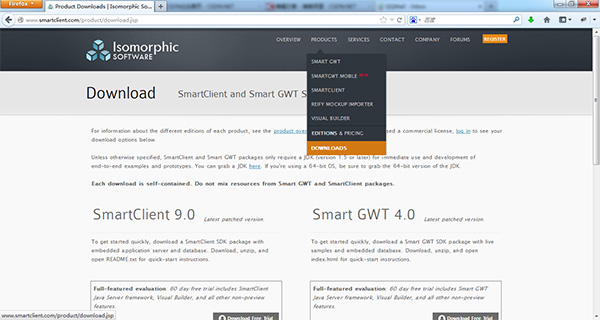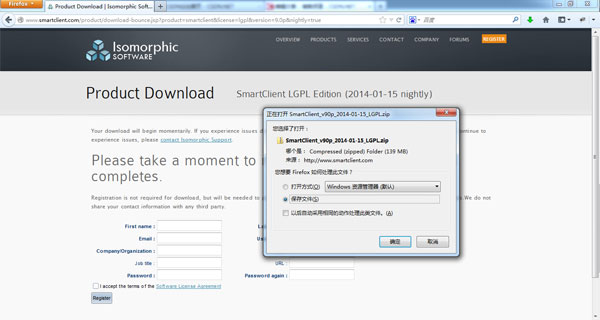 SmartClient产品需要注册才可以下载,我们必须填写一个简单的注册表单,