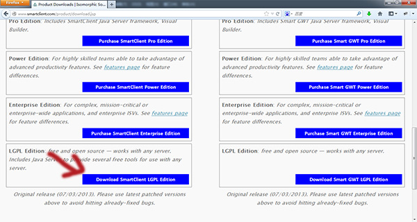 否则我们下载其LGPL版本即可,找到最新的LGPL版本的SmartClient下载入口,如下图所示: