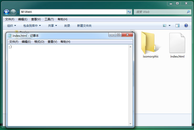 然后就把isomorphic文件夹及其下面的所有文件放到这里,再创建一个首页文件,比如 default.htm,
