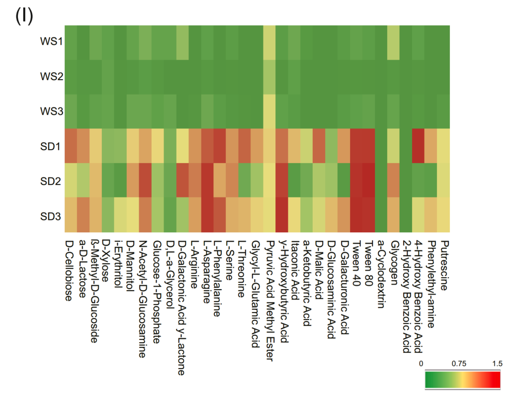 I 微生物群落对Biolog Eco板上31种底物利用的热图**。