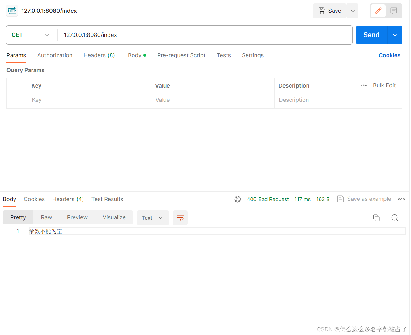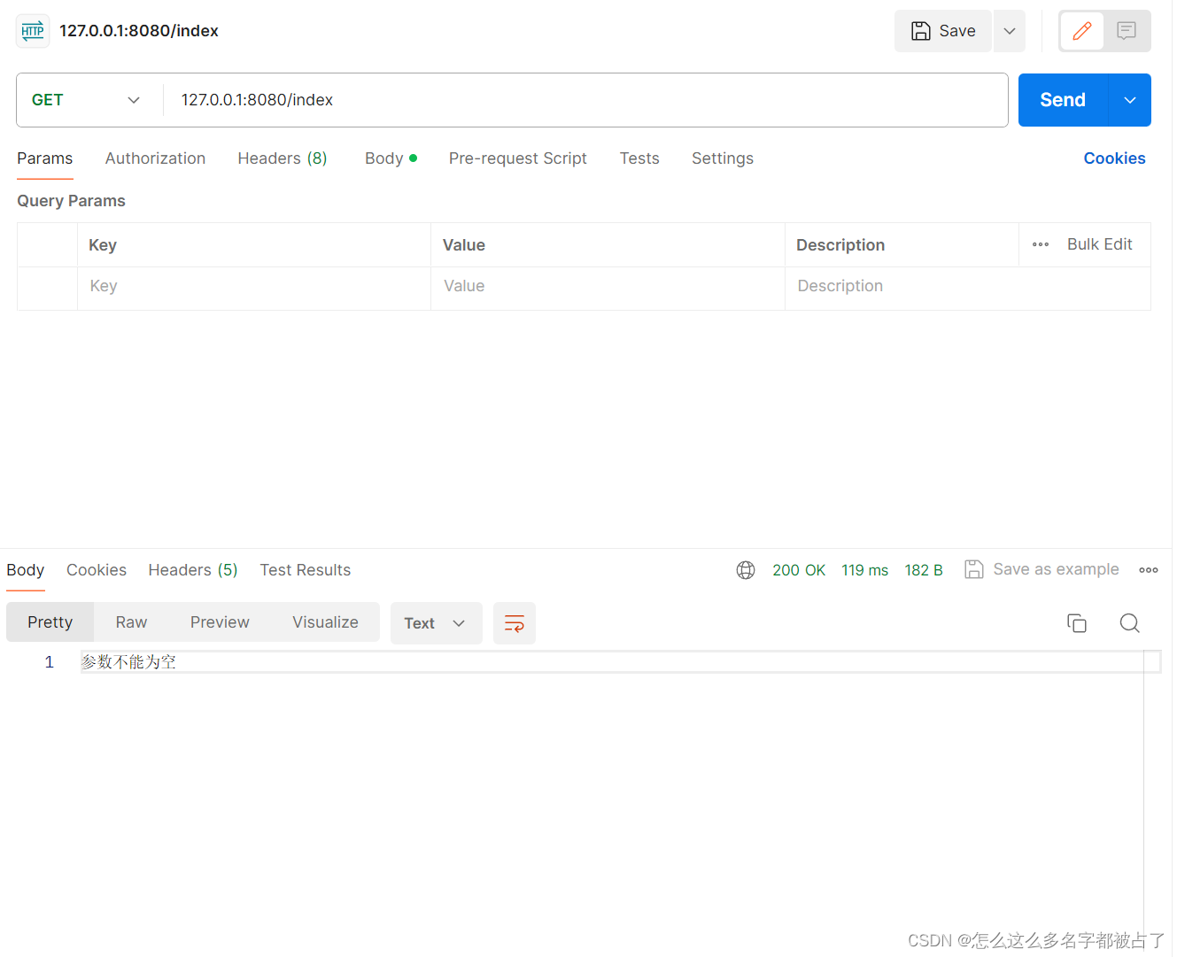 用postman不加参数,测试一下: