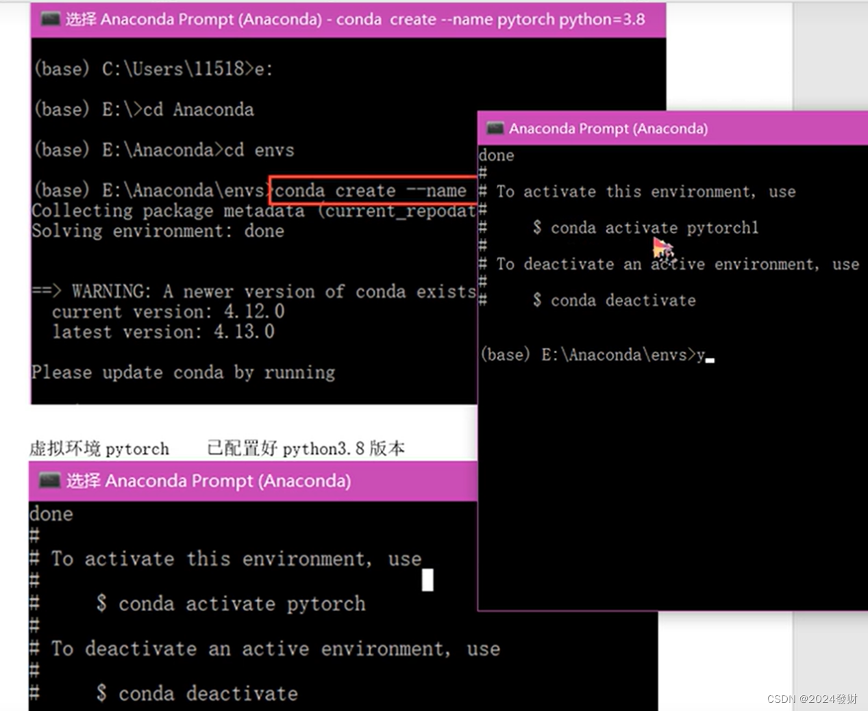 在anaconda的Anaconda prompt(以管理员身份运行)中下载需要用到的python库(需先激活PyTorch环境并进入到你的envs文件夹下,再下载,这样不容易出错)