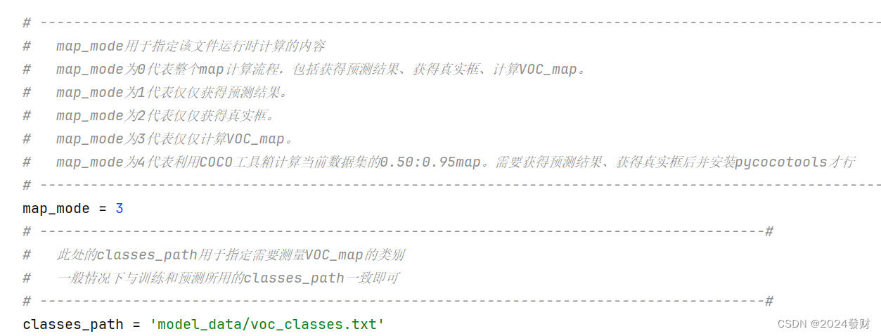 然后将get_map里的classes_path里与训练和预测的一致即可,map_mode根据需求修改,默认为0。