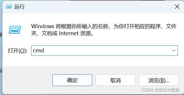 使用Win+r 后输入 cmd