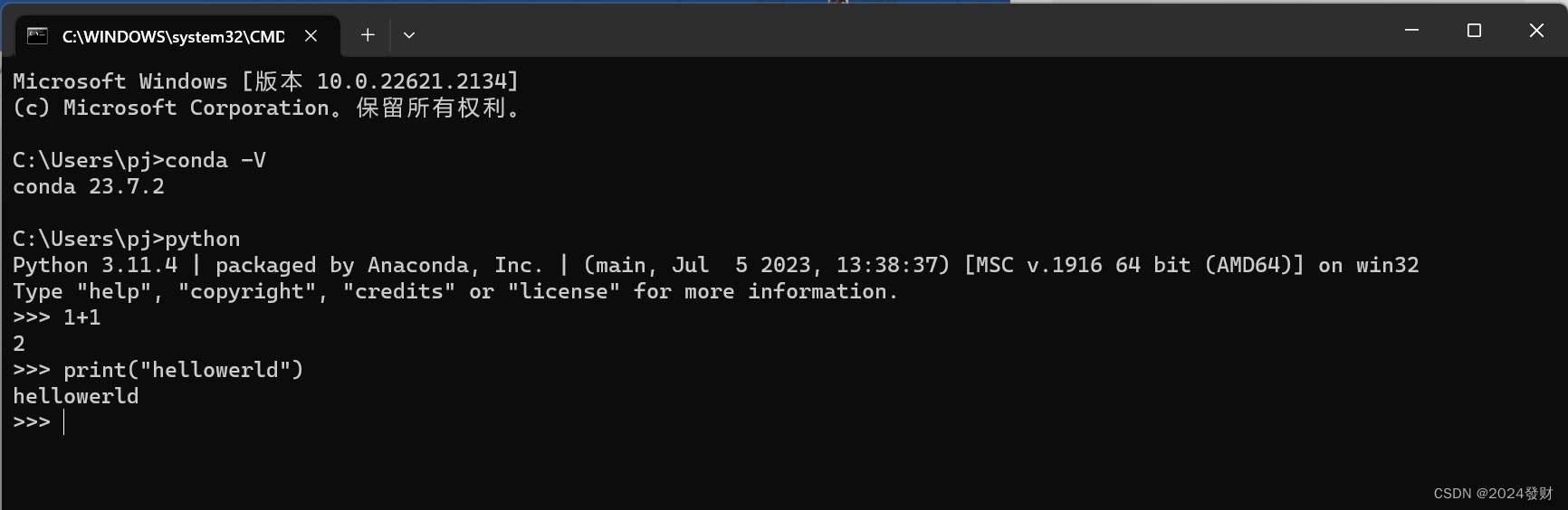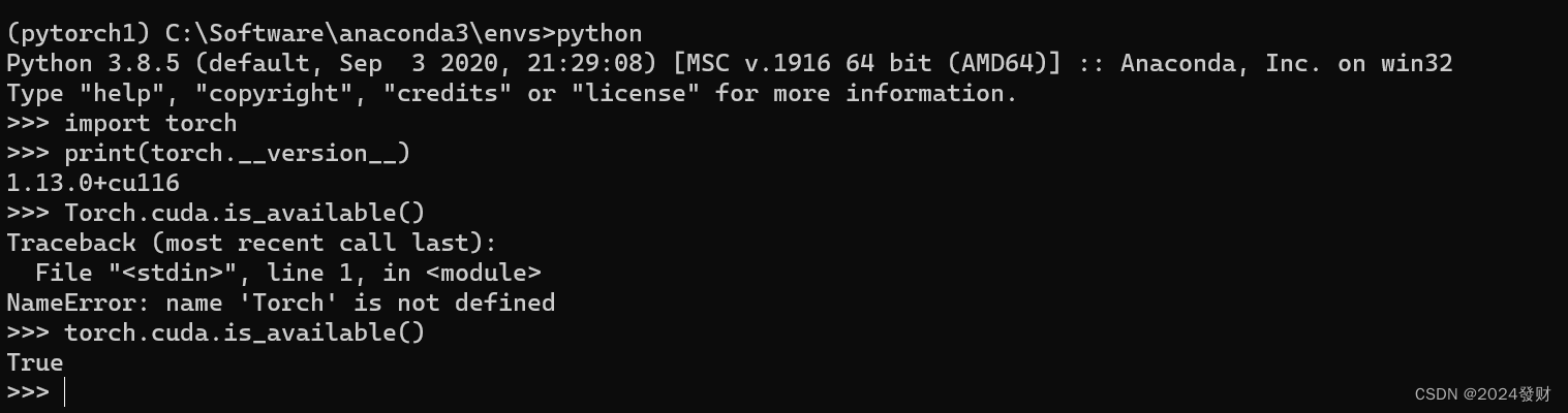 在pytorch环境下,输入python,进入python环境中输入import torch,顺利出现下一行即为成功