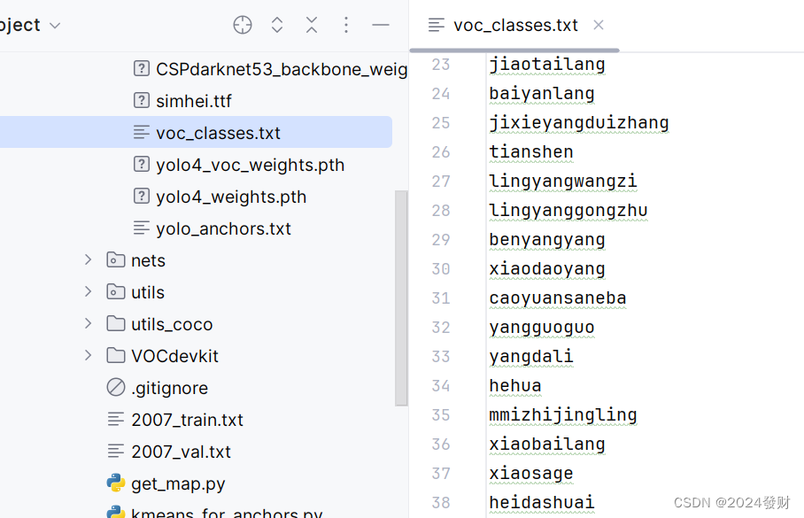 训练自己的数据集时,可以自己建立一个cls_classes.txt,里面写自己所需要区分的类别。或者在model_data下的voc_classes.txt里添加目标标签,要全英文的,不能含有中文和其他字符。