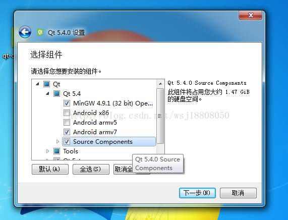 安装包:Qt 5.4.0 for Windows 32-bit (MinGW 4.9.1, 852 MB)