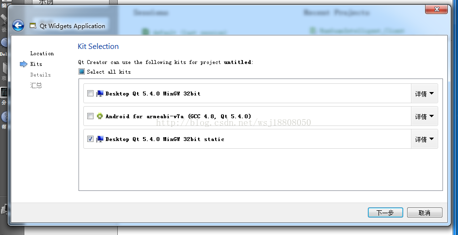 4.1 打开Qt,新建工程,选择静态编译的套件