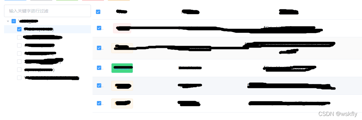 点击树的node后,右边表格就有数据,这些都不本文要实现的目的,本文要实现的是点击左侧的checkbox,右侧的checkbox会被选中,当点击下一个树node时,上一个树node的状态要保持。点击左侧全选框时,右侧所有checkbox会被选中。