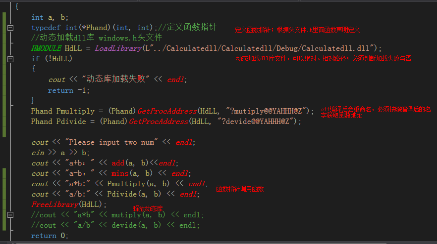 动态链接库的显式装入就是通过GetProcAddress函数,依据动态链接库句柄和函数名,获取函数地址。因为GetProcAddress仅是操作系统相关,可能会操作各种各样的编译器产生的dll,它的参数里的函数名是原原本本的函数名,没有任何修饰,所以一般情况下需要确保dll’里的函数名是原始的函数名。