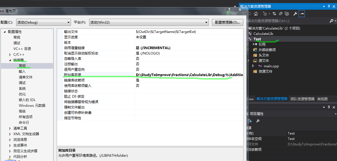 添加lib库目录到附加库目录: