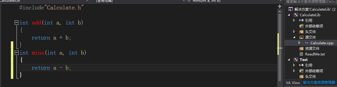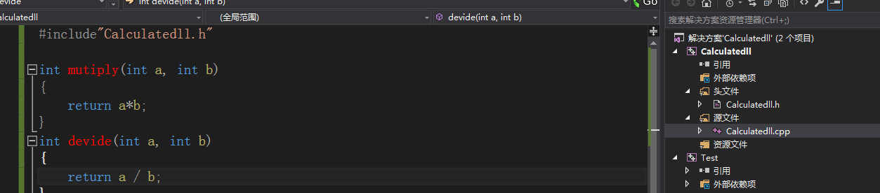 !!! 为了解决c++函数重命名机制带来的问题,dll可以用extern "C"字段声明,此时test文件就可以用.h文件中的函数名了。