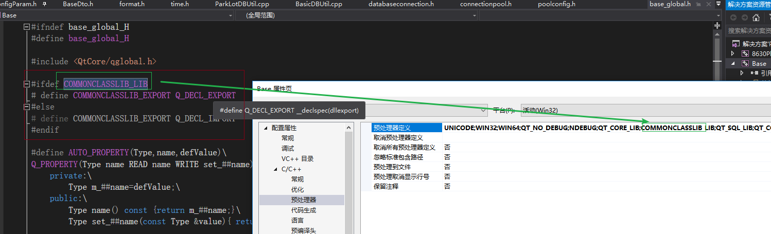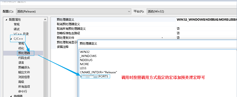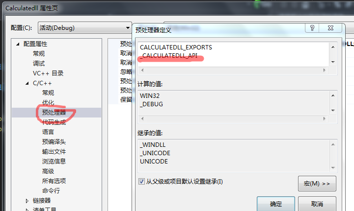 在dll的头文件中利用条件编译,设置好导入导出属性;右击项目->属性->c/c++->预处理器->添加宏定义