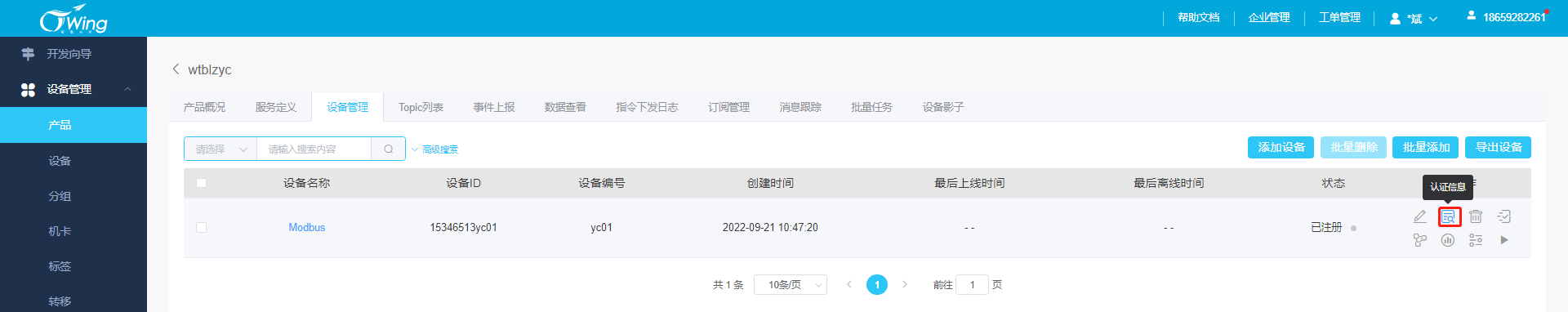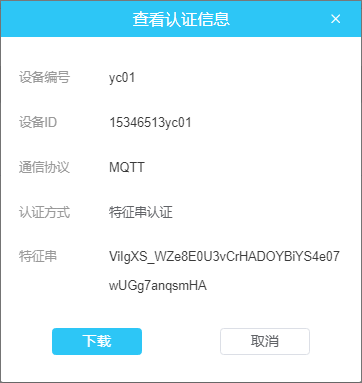 设备ID以及特征串是我们后面需要在网关上配置的连接参数。