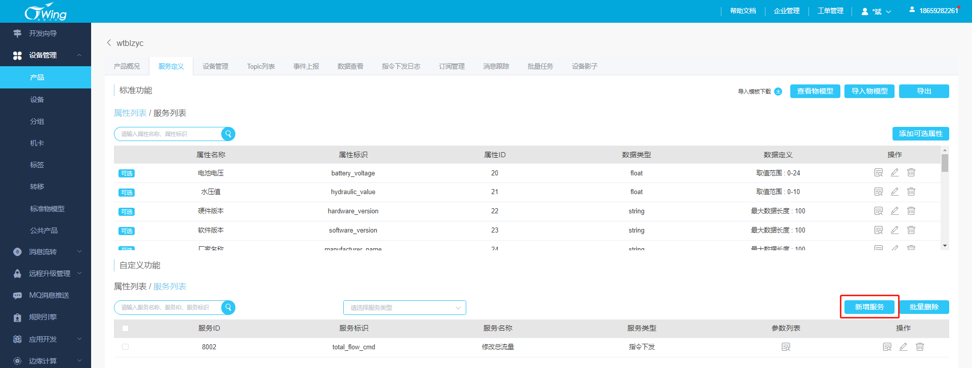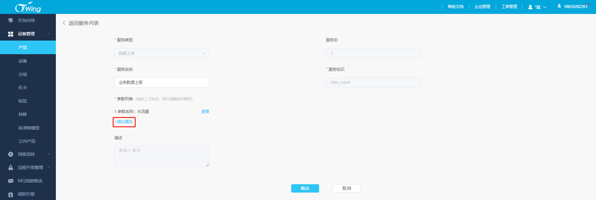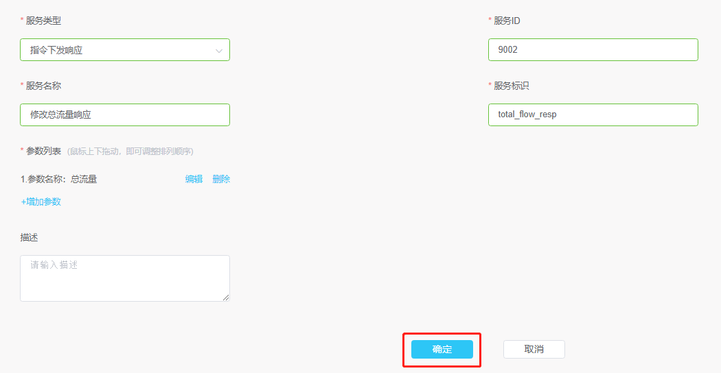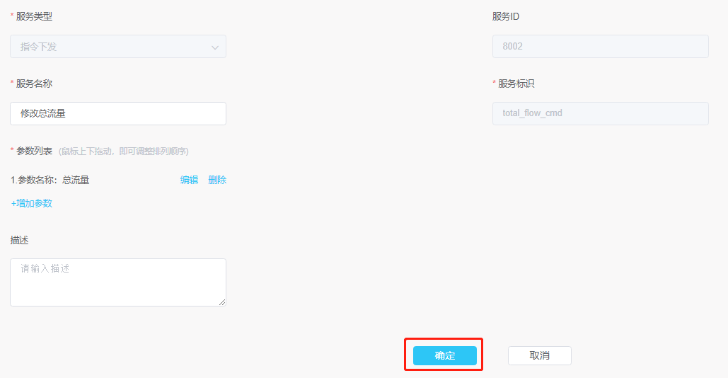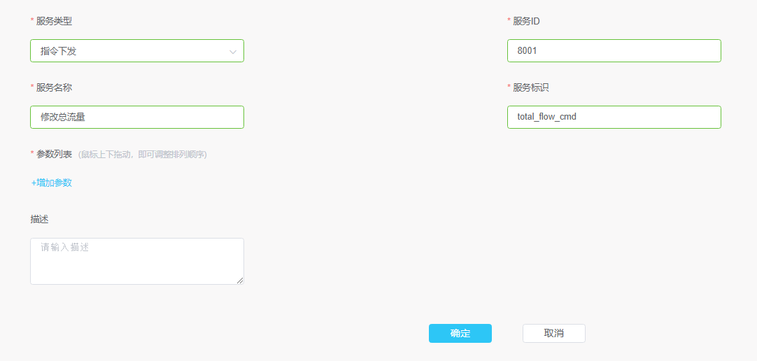 注意:服务类型为”指令下发”时,服务标识命名规则为:属性标识_cmd。