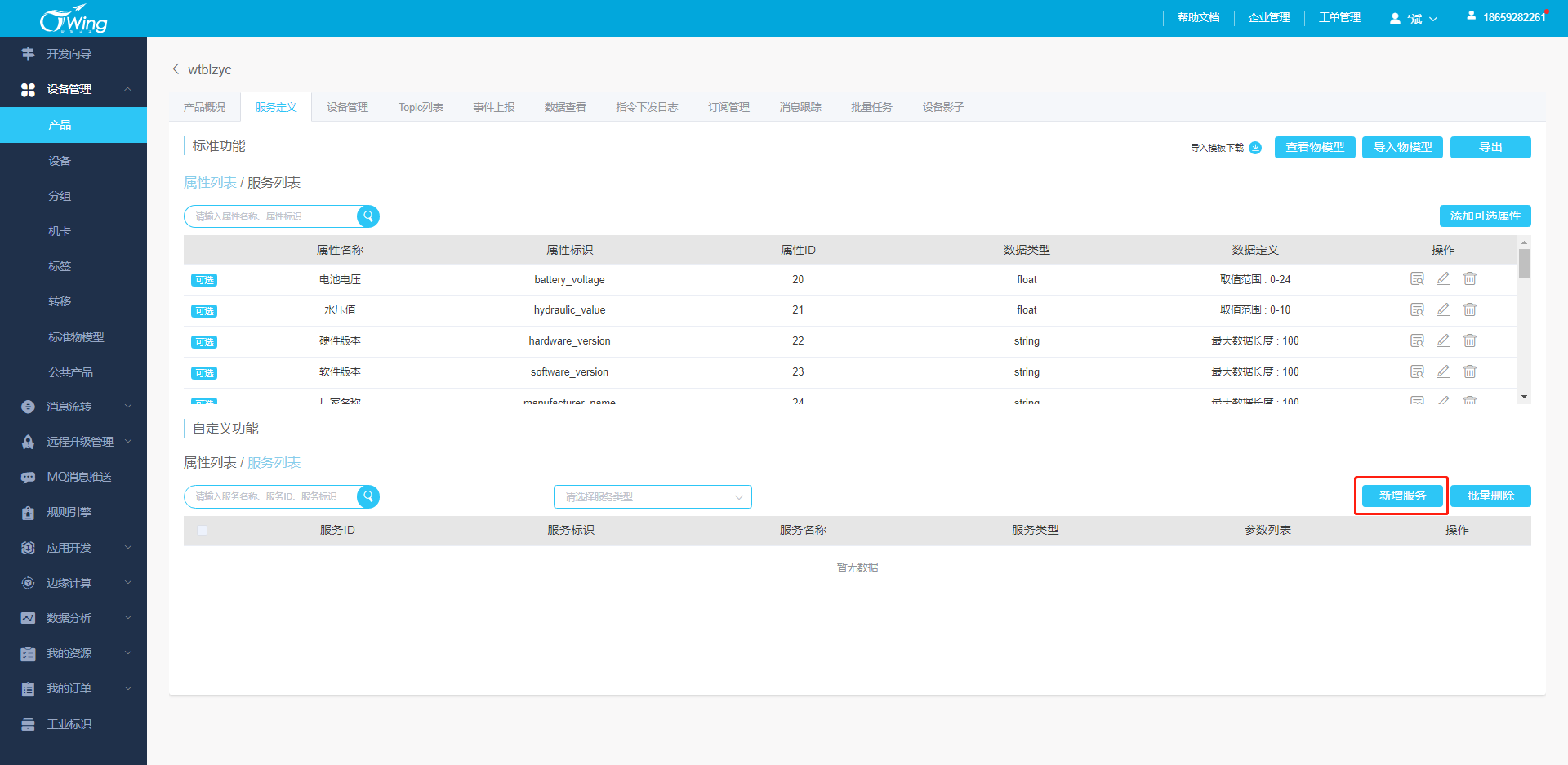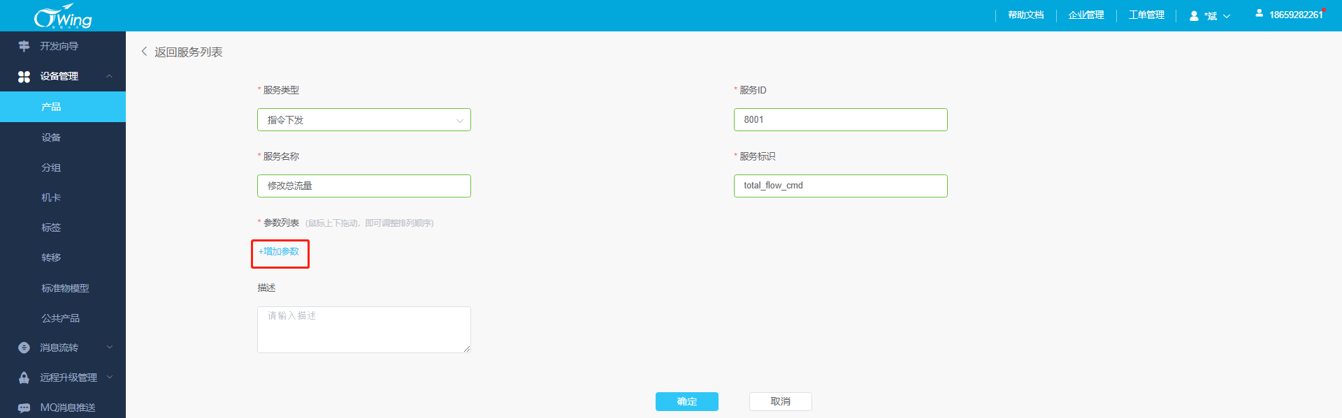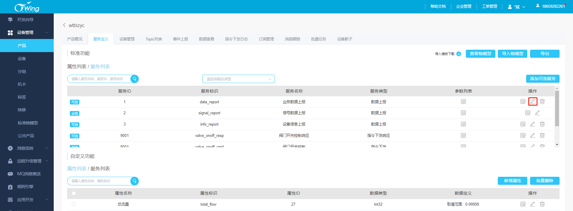 注意:服务类型为”指令下发”时,服务标识命名规则为:属性标识_cmd。