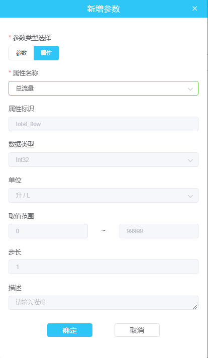 点击增加参数,参数类型选择属性,属性名称选择对应的点位。