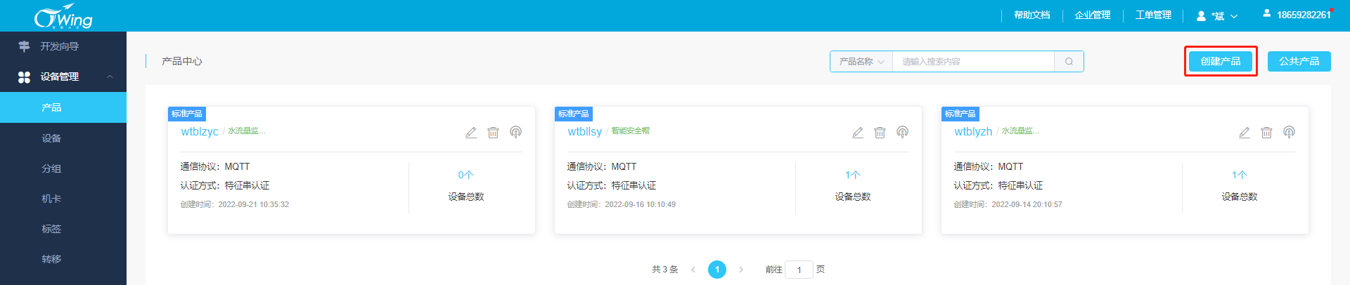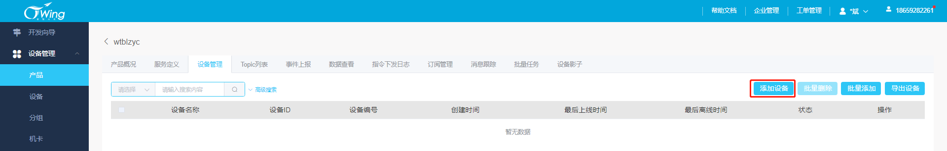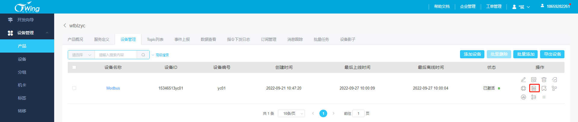 在产品——设备管理页面对设备进行操作,点击“指令下发”