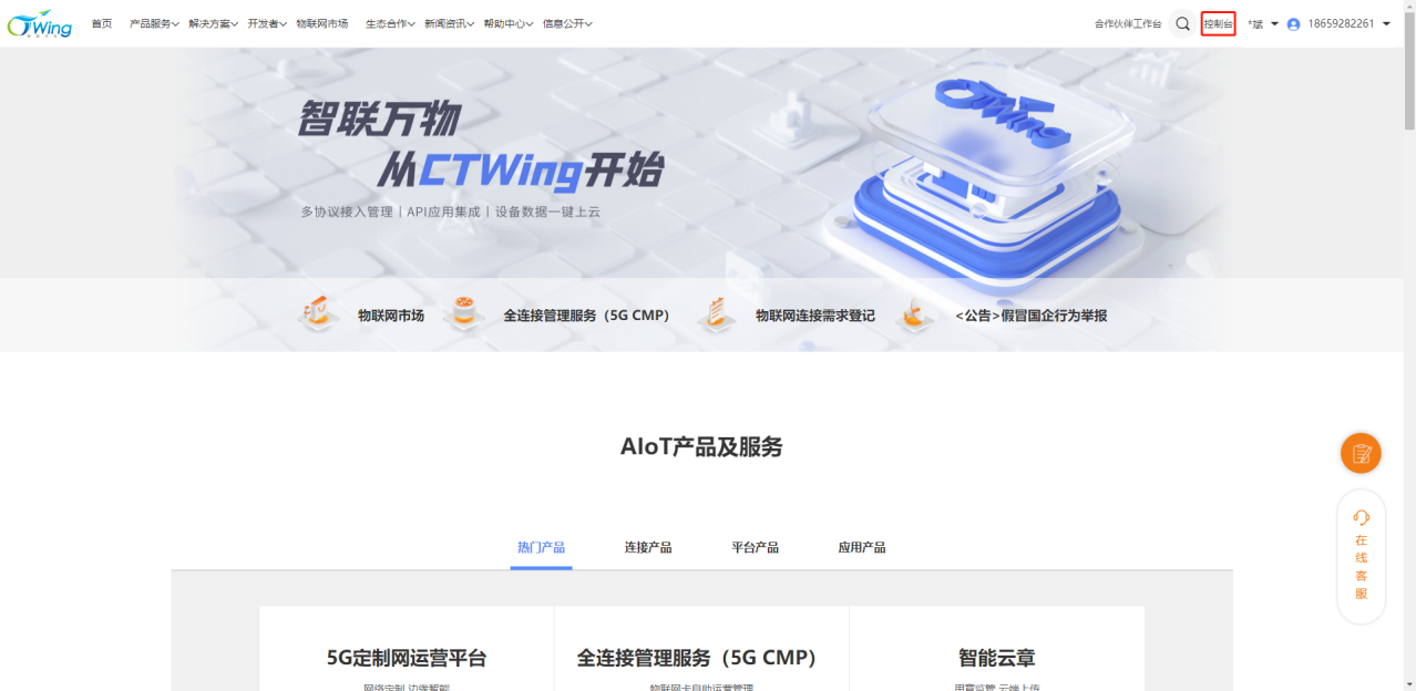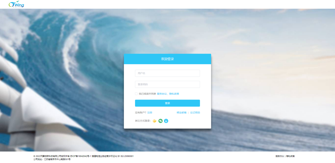 打开天翼物联网网页,通过天翼物联网平台账号登录CTWing。