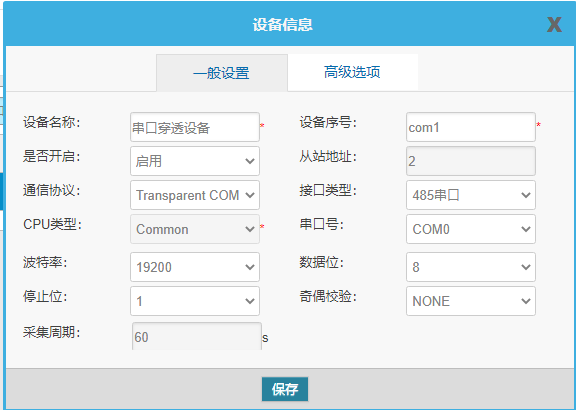 RS232/RS485:网关下挂设备的波特率+数据位+停止位+奇偶校验位